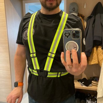 This vest has been a constant companion during my evening dog walks this winter. Its easy adjustability makes it versatile over various coats, and the buckle closure is both sturdy and convenient. The quality of the webbing and reflective material is impressive, making it a step up from my previous vest