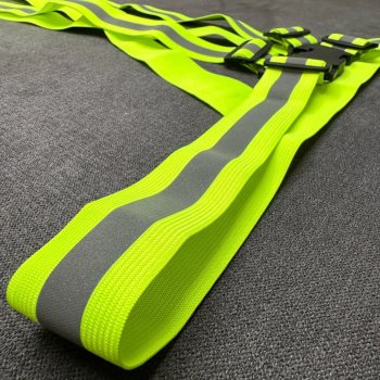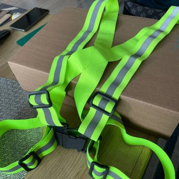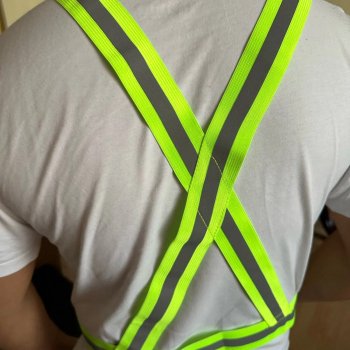 Fulfills its function. Reflective and striking. And the strips are adjustable so anyone can use it